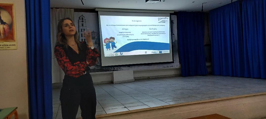 Την Παρασκευή 20 Μαρτίου πραγματοποιήθηκε στην Αίθουσα Εκδηλώσεων του σχολείου μας εσπερίδα με θέμα «Επικοινωνία δίχως βία». Η δράση υλοποιήθηκε σε συνεργασία με το Κέντρο Ημέρας για τον Αυτισμό της ΑμΚΕ ΙΑΣΙΣ – Connect Autism και το 3ο Δημοτικό Σχολείο Νέας Φιλαδέλφειας.