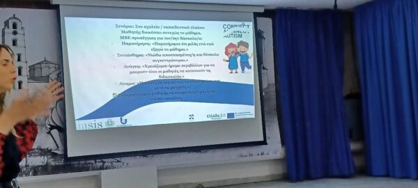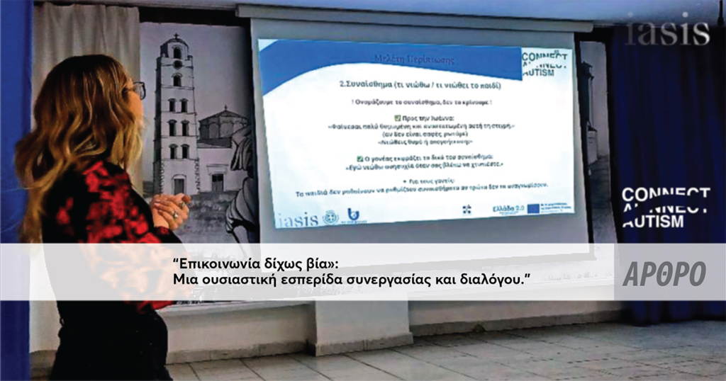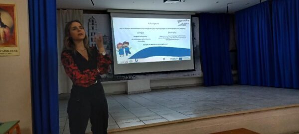 Την Παρασκευή 20 Μαρτίου πραγματοποιήθηκε στην Αίθουσα Εκδηλώσεων του σχολείου μας εσπερίδα με θέμα «Επικοινωνία δίχως βία». Η δράση υλοποιήθηκε σε συνεργασία με το Κέντρο Ημέρας για τον Αυτισμό της ΑμΚΕ ΙΑΣΙΣ – Connect Autism και το 3ο Δημοτικό Σχολείο Νέας Φιλαδέλφειας.