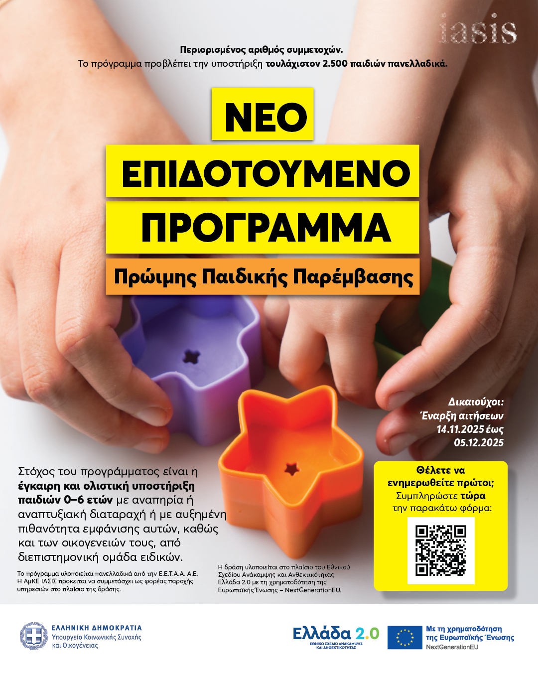 Τα Κέντρα Ημέρας πρώιμης παρέμβασης της ΑμΚΕ ΙΑΣΙΣ σε Αθήνα και Θεσσαλονίκη, “ConnectAutism” και “ConnectFamily”, συμμετέχουν ως Πιστοποιημένοι Πάροχοι της ΕΕΤΑΑ στο νέο Πρόγραμμα Πρώιμης Παιδικής Παρέμβασης (ΠΠΠ) για παιδιά ηλικίας 0–6 ετών.