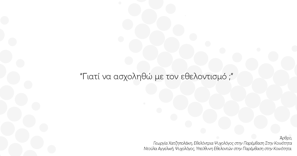 “Γιατί να ασχοληθώ με τον εθελοντισμό ;”