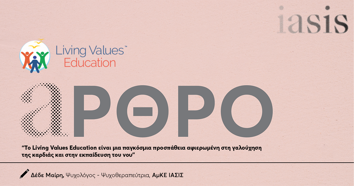 Το Living Values Education είναι μια παγκόσμια προσπάθεια αφιερωμένη στη γαλούχηση της καρδιάς και στην εκπαίδευση του νου. Το LVE παρέχει μια προσέγγιση και εργαλεία, για να βοηθήσουν τους ανθρώπους να συνδεθούν με τις δικές τους αξίες και να τις βιώσουν. Οι αξίες αυτές, είναι οι εξής: Ειρήνη, Σεβασμός, Αγάπη & Φροντίδα, Ανεκτικότητα,