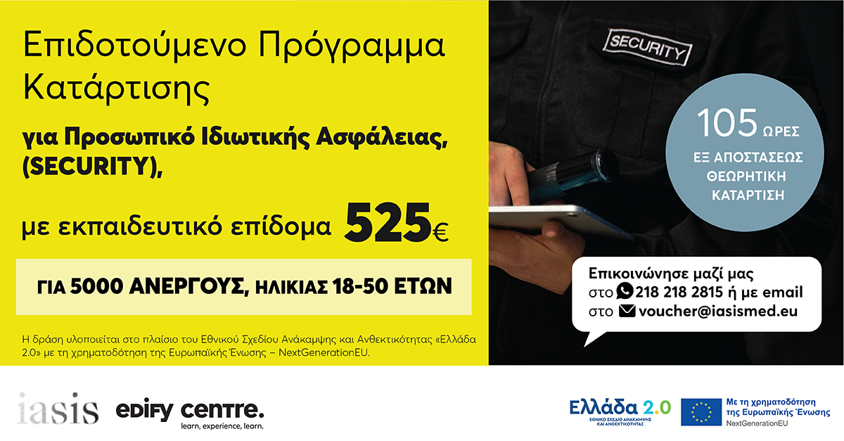 ΝΕΟ ΕΠΙΔΟΤΟΥΜΕΝΟ ΠΡΟΓΡΑΜΜΑ ΚΑΤΑΡΤΙΣΗΣ ΑΝΕΡΓΩΝ ΓΙΑ ΠΡΟΣΩΠΙΚΟ ΙΔΙΩΤΙΚΗΣ ΑΣΦΑΛΕΙΑΣ (SECURITY)