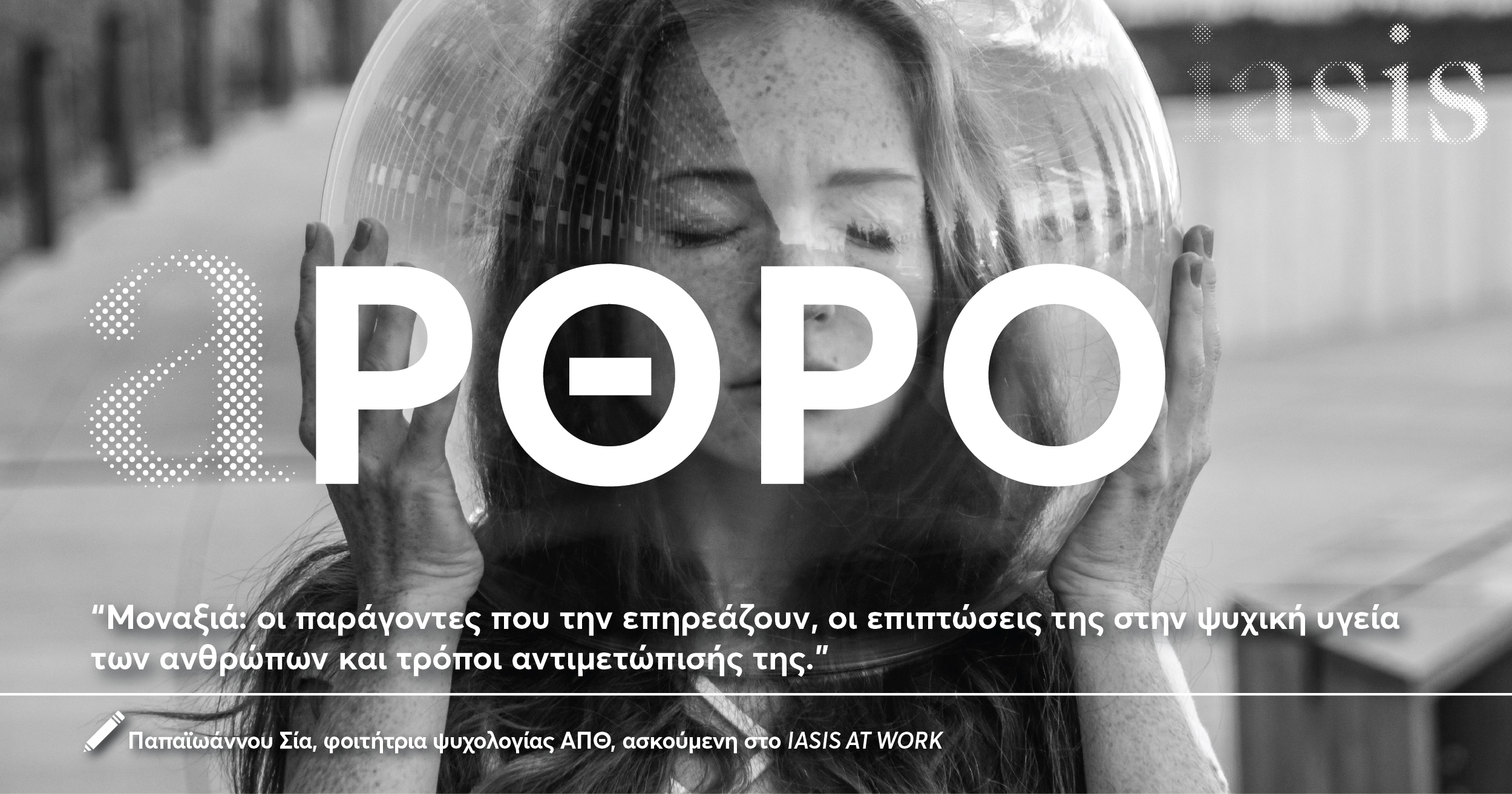 “Μοναξιά: οι παράγοντες που την επηρεάζουν, οι επιπτώσεις της στην ψυχική υγεία των ανθρώπων και τρόποι αντιμετώπισής της” . Οι άνθρωποι είμαστε όντα κοινωνικά, και χωρίς την επαφή με τους άλλους υπάρχει περίπτωση να καταρρεύσουμε ψυχικά και σωματικά. Όταν το άτομο δεν διαθέτει κατάλληλους κοινωνικούς δεσμούς, δηλαδή δε συμμετέχει σε επιθυμητές δραστηριότητες που